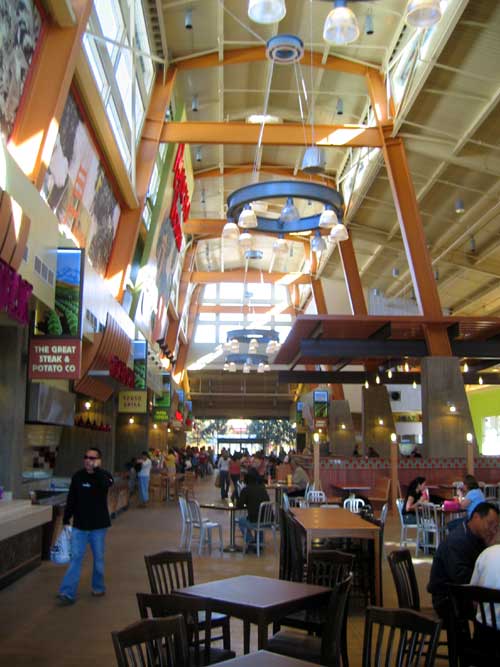 One of the more interesting building is the food hall which is the only structure with an articulated interior volume. It is basically a decorated industrial shed that looks like a cross between an agricultural warehouse and a county fair exhibition hall, which works rather well since the interior houses the food court for this mall. The JC Penny store also brings to mind the grand designs of old department stores, at least on the main entrance side. Unfortunately, the other sides of the building look more typically like a suburban box store.