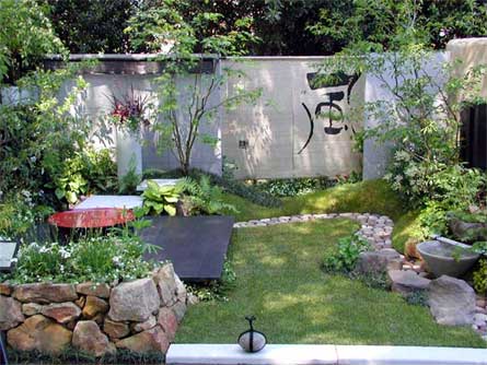"A garden for watching wind and appreciating the elements of nature, combining traditional Japanese gardening aesthetics with modern 21st century design. The four fundamental elements of a Japanese garden - water, stones, plants and the senses - are incorporated alongside contemporary materials, including a stainless steel mirror to reflect light and the movement of the plants in the wind."