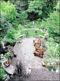 "WHEN JIM AND Charlene Geiszler step onto the upper-level porch of their Shoreline home, they can sink into rattan chairs and relax in complete privacy amid a woodland setting of Japanese maples, vine maples, bamboo, decorative grasses and ferns. A gurgling waterfall in one of two modest pools disguises the rumble from the outside world, including nearby Interstate 5."