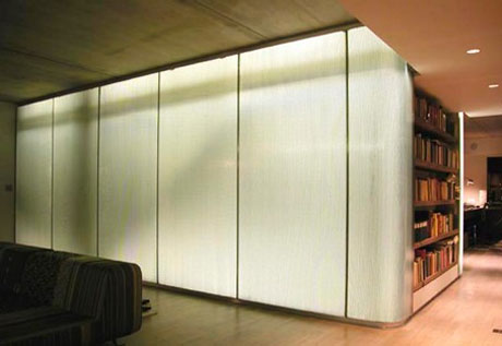 "Panelite materials are translucent, lightweight, and modulate both light and vision. Providing light transmission, visual privacy, and aesthetic flexibility, they are suited to a wide range of applications including walls, ceilings, furniture, and exterior facades."