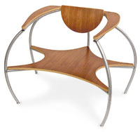 "The Spyder chair is for people who want to exercise their freedom of expression at home or the office. This curvaceous chair exudes confidence and fun. The smooth planes of wood are angled just right for a very enjoyable sit. And it tends to make people giggle."The Spyder is available in a maple, cherry, or walnut finish.