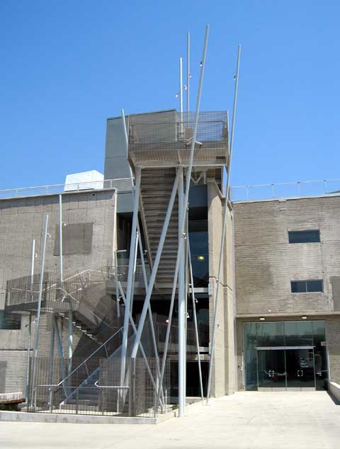 The south end of the building with the main stairway accessing the rooftop
