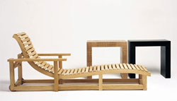 Chaise Lounge Furniture, Outdoor — July 24, 2004 Posted by Anthony From Armani Casa "Chaise Lounge in naturally painted solid oak, wood seat with strips, adjustable back rest, with small wheels in black rubber." Link: Armani Casa