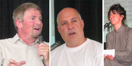The second talk we heard featured architects Lorcan O'Herlihy and Lawrence Scarpa moderated by Venice Paper editor/publisher Tibby Rothman. The discussion, entitled "Density is Not a Dirty Word: Life in the Big City," is especially poignant in Los Angeles (and Venice in particular) as local growth is outpacing the typical sprawling suburban model of housing being produced in the region. O'Herlihy noted that change is needed in the current planning model of a dense center surrounded by sprawling suburbs creates a problem of certain program such as schools are excluded from dense areas because of land values. Scarpa spoke about a non-profit group that he is involved with called Livable Places and the work they are doing in high density, sustainable, low income housing. He noted that current zoning rules in the U.S. were written in the post-war era and are no longer relevant. Scarpa also stated that too many decisions are made by politicians who lack planning knowledge and too few architects are involved with politics.