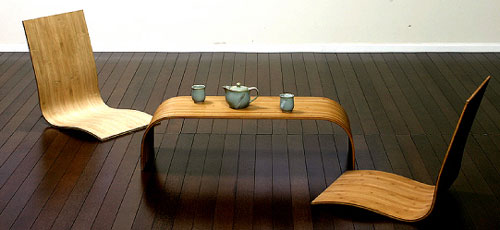 "The Spring Chair's single part form minimizes weight and material waste. Its ergonomic design is contoured to the body. The strength and flexibility of bamboo create a gentle rocking action in a sled-based chair.Insted of using birch ply, douglas fir, or any other typical "tree" wood, Adapt has chosen to use bamboo, which I have learned, is not a tree, but a giant grass. For an informative introductory about bamboo and its many uses, check out Adapt's materials page.