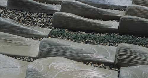 Designed by PATTERNS principal Marcelo Spina in collaboration with the Land.Cro.Sy.Rials seminar class at SCI-ARC, Land.Tiles is the outcome of the research and development of an emergent generation of highly integrated, environmentally-sensitive, contour-responsive erosion control and landscape consolidation systems. Portrayed as an "actively affective landscape micro environment" the installation includes a circuitry of continuous water flow that stimulates severe and shifting conditions. The project duration of six months allows structural, surface, and vegetation conditions to be monitored over an extended period of time.