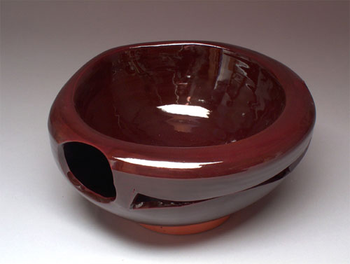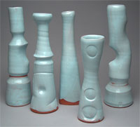 "Making Ceramic art is like working with flesh that becomes bone. It enlists every element: earth, water, fire, and wind to become what I ask of it. It awkens all the ancestry of vessels or rejects hollowness and is massive. It is strenuous to work with as well as easy. My body learns from the feel of it, and the puzzle that is the process, helps my head."