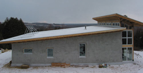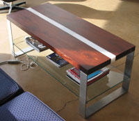 "I've been toying with the concept of lighted furniture for a while now. I like the idea of creating small discreet sources of low light scattered around a room and using point sources where more illumination is needed (i.e. for reading). One method of doing that is embedding lights within furniture. In the case of this table the light is provided by two 1W LED's. It shines both up and down. The light up is very pretty, but not particularly useful (you can't read by it). The light down illuminates the bottom shelf, in our case the home of our stack of current magazines."Another cool thing on his site is the house he's