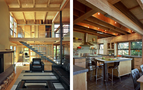 We really like the way that the construction and framing of the structure is honestly expressed. Glulam beams, plywood, structural steel and hardware are exposed and featured as design elements. Large windows capture views of Mount Hood and the Willamette Valley.