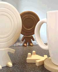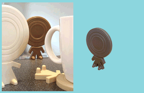 "the coasters are manufactured using heat resistant rubber moulded in the form of either a boy or girl figure with an enlarged ‘head’, which provides space for your drink. the coasters have ‘feet’ so they can be stacked together and stood up to attention when not in use! when you need them, just flick them down and place your drink on their big heads. the ‘boy’ and ‘girl’ forms mean your drinks need never get muddled up again!"