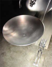 The design facilitates various installations, including an available wall bracket or on-countertop mounting. Available in white bronze, silicon bronze, brass or aluminum, each basin has a rough cast texture on the outside and a satin-polish on the inside.