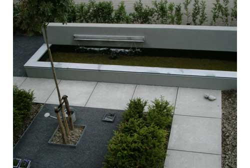 The gardens of Harry de Visser finds their origin in the context as an expressive artist and illustrator. The designs are exclusive, monumentally and frequently minimalistisch of form, but spherical. Main point for a design is the architectonic half-measure sheathing. Architecture and garden must a relation with each other have. Entirely must radiate rest and space. By devising particular elements, every garden gets its own character. take water design, architectural elements, visibility lines, contrast, functional beplanting, reduction and environment prominent. (Babelfish)Update: We just got word from Harry. Beplanting "means all kinds of plants that you use in a garden." Simple enough, thanks Harry!