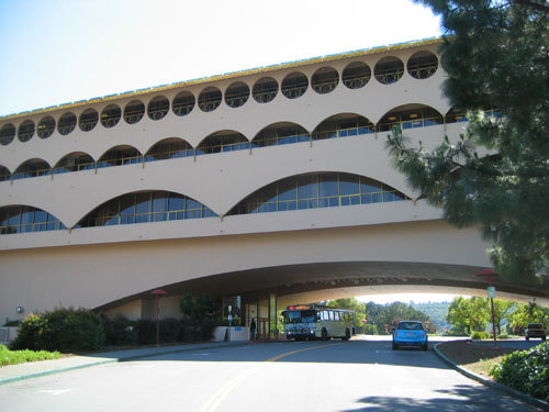 Apposite to Wright's fascination with the automobile and his vision for democracy, the building is designed in many ways to be experienced by car; viewing from the highway, moving through the site and actually passing beneath the building. This movement of Marin's citizens in and around the building emphasizes its accessibility. The entrances to the building are located beneath the three ground level arches.