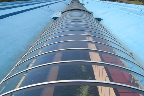 In addition to the change of roof color previously mentioned, another change to come after Wright's death was to add a skylight structure over the interior atrium.