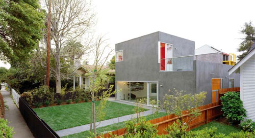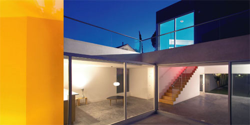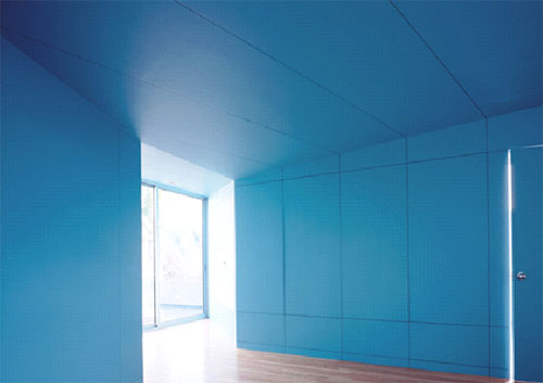 Living spaces were designed as an open and flow and are transparent to the outside. Taking cues from the colorful Morphosis building, each private interior room was "conceived as a unit of color, lined with resin panels of bright pink, turquoise and yellow orange."