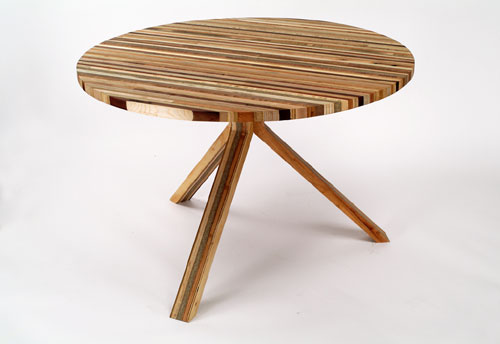 We received an email from Carlos over at Scrapile alerting us to several new pieces in their 2005 collection. Images we received include a wall-mounted shelving system, a circular table with tripod legs, and accessory boxes in several sizes. Scrapile produces their products out of discarded wood from local wood shops. Thanks, Carlos!