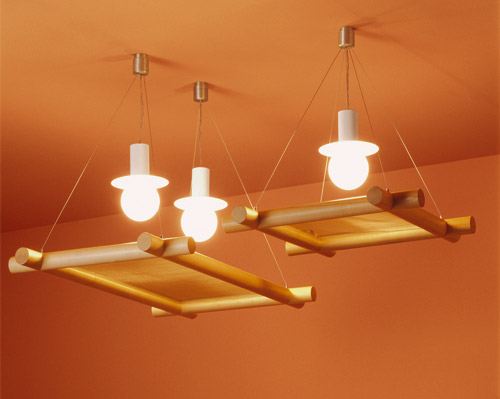 Lua: "A simple ceiling structure made of maple wood; a light metallic net placed between two glass sheets to diffuse the light better; 1 or 2 low energy lamps to illuminate a dining room table."