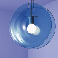 The Bahiana (2004, featured at right) is formed by two pieces of Murano glass held together with a pair of hooks and separated by the bulb socket.