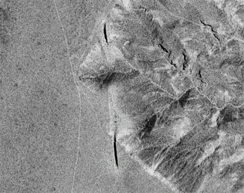 Pruned's post touts the merits of TerraServer, a site that I also prefer for aerial imagery and shows views of Robert Smithson's Spiral Jetty and Michael Heizer's Double Negative (beautifully manipulated images, by the way).