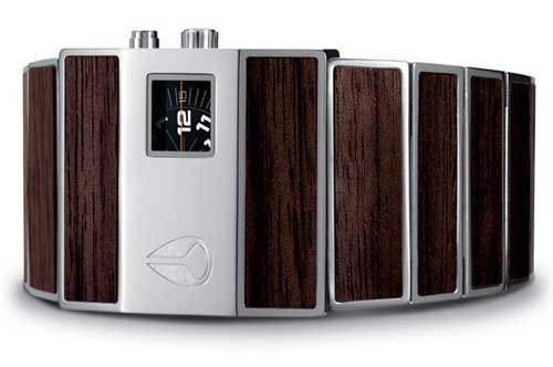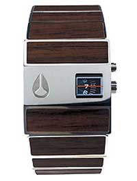 What a cool watch! The Rotolog's case and band are machined from stainless steel with walnut wood inlays. It's also available in leather but c'mon, we all know the walnut is way cooler, brah ;-) My only bitch about the watch is the Nixon logo that's on the face. A logoless face would be much cleaner. I would prefer a slightly wider dial window with the logo on the dial. Ah, walnut and steel, so hot right now (ok, that'll be the last time I say "so hot right now" in a post).