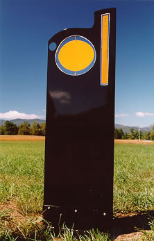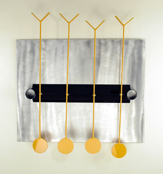 What sets her apart from most of the post-Calder crowd is a flair for composition. Her linear elements do more than just hold planes in space, as so often happens with mobiles. She incorporates line as an integral gesture, signaling motion even in static work. While some of her work falls into the category of pure abstraction derived from the play of balanced forces of motion, the most interesting pieces are those which readily display her fascination with forms as they occur in the natural environment.