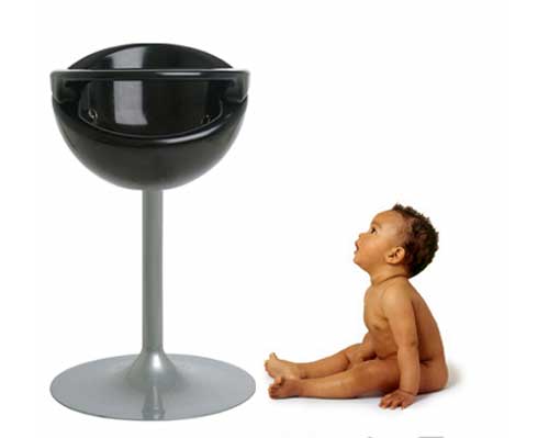 The Nest is availble in black or white and features a powder coated tulip base and an easy to clean polyethlyene seat.