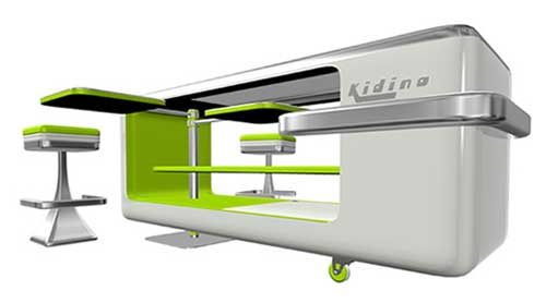 We received a note from French Designer Gilles Roudot alerting us to his creations. Unfortunately, I do not speak French and running the text through Babelfish seemed sketchy at best so I'll just leave you with some eye candy from Gilles. The objects on his site appear to be mostly renderings so I'm not sure if any of his designs have come to fruition but there are several pieces that stand out. Of particular note is the Diner (below), which takes a futuristic approach to a 50's style diner counter, complete with barstools and swingout trays.