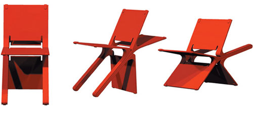 The Flip chair is a prototype chair from Shawn Bruce that offers different seating arrangements depending on the situation. In it's most conservative way, it is a simple 100 degree incline chair. Yet at night, flip it over and it lets its hair down, becoming a 110 degree lounge chair. Each seating position offers two arrangments so you're sure to be comfortable one way or another.