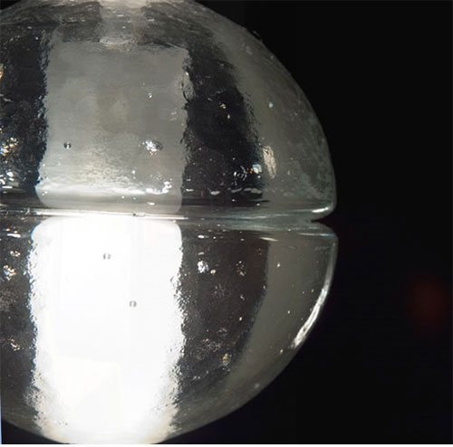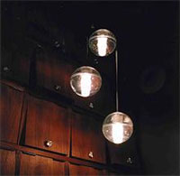 The 14 series is a family of low voltage lighting fixtures. The pendants are articulated seamed cast glass spheres with frosted cylindrical voids in them, which house halogen light fixtures. The pendants are designed to be clustered in groups - the effect being of many tiny candles encased in floating spheres of water. The light interacts with the imperfections / bubbles in the glass to make a visually rich halo of light around the piece.