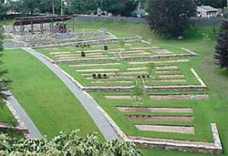 The garden site is approximately 4 acres and features an elevation change of nearly 30 feet. A system of non-reinforced three foot thick stone walls were implemented to create a series of garden terraces which provide level ground and an organizational system for horticultural display. The design is evocative of tradition of agricultural landscapes as well as French parterre gardens.