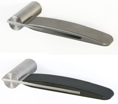 I have admired James Cutler's modern arts-and-crafts-inspired detailing and design for some time, and the introductory line exemplifies these traits drawing from the firm's custom detail designs for past projects. The product line currently includes designs made metal or a wood/metal combination: door-levers and knobs, drawer pulls, a door knocker, chairs, tables, etc. The designs are elemental and purposeful revealing construction and function in their form.