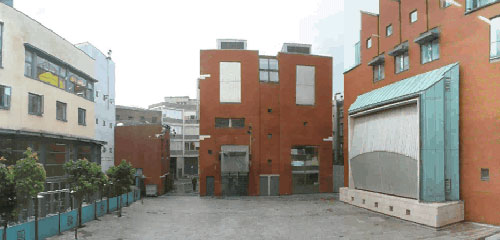 A more contained space than Temple Bar Square, Meeting House Square is an outdoor room bound by The Ark (at right, by Shane O'Toole), and the National Photographic Archive and School of Photography (top, by O'Donnell + Tuomey). The square features a stage and projection room to facilitate film screenings, performances and concerts. The Temple Bar Food Market is held here every Saturday.
