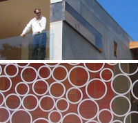 Barragan’s legacy appears to be prevalent in most of the projects today, and the toned down, almost anonymous exterior of this residence is clearly reminiscent of a couple of houses I've seen in Mexico City. The procession leads you through a nicely designed gate, up a flight of orangey red tiled stairs, and there you are in the namesake of the residence. Everything revolves around the central courtyard, and you will have to look at the pictures to get a clearer idea of what is happening, since this house is very hard to describe. Tom explained ecological approach by comparing other eco-houses to hybrid cars, while his house is a bicycle. Well said, and the omnipresent nana walls (for the last time) blur the line between inside and outside spaces to an extent where you are really not quite sure anymore where one ends and the other begins. Have a look at the kitchen windows, which can be closed and opened in a bunch of different configurations, and you get an inkling of the intellectual design problem solving work that went into every aspect of this project. It is more like a sculptural green machine, with custom built ins, radiant floor heating, carefully studied orientation for maximum passive cooling and heating, and an overall gallery-like feel to it. A very cool and hip gallery!