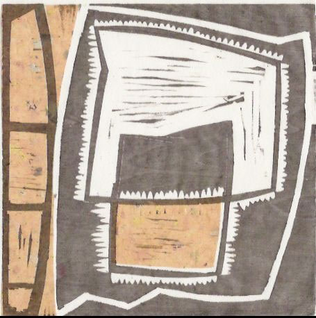 ABOVE: "Distant" - 6" x 6" woodcut and Chine Colle on Mulberry paper.