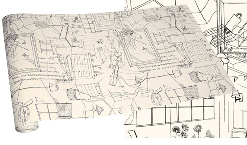 Erica Wakerly Wallpaper Floor - Wall, Materials — August 5, 2007 Posted by Anthony "Homes" wallpaper from Erica Wakerly is available in either black or brown on a creme background. Available in 10 meter rolls. Link: Erica Wakerly / PrintPattern.com "Homes" is also available in fabric.