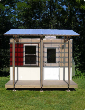 The average American home is roughly 2,200 square feet yet the microHOME is less than a 100 square feet. A mix between a small house, a ship's cabin, and a travel trailer, it comes standard with a kitchenette, including a sink, stove, refrigerator and storage, as well as a private bathroom with a pass-thru shower and composting toilet. There are also a multitude of interior options and porch styles to choose from allowing the homeowner to personalize their own dwelling. With just a single 8 foot by 12 foot unit the microHOME can provide all the daily needs of three occupants.