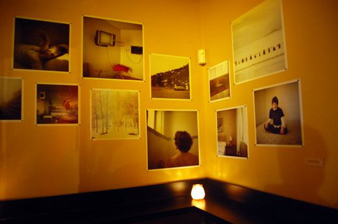 The Event was a great success, only minutes after Mars Bar opened its doors, the space was filled with the buzz of local artists, landscape architects and designers. String lights lined the sod-covered sidewalk directing the incoming flow through the doors where they were presented with a layout of the exhibits and a schedule for the media show. People meandered through the Front Gallery to explore the art work ranging from photography portraying the American Landscape in Bryan Schutmaat's eyes, poetic mixed media works from local Designer Zach Tanner, and Landscape Architect Christian Lemon's sculptural work constructed from bamboo, wood burl and Japanese maple.