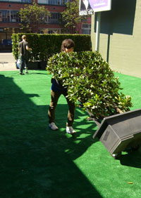 The busy crew of IDEA!ography stood guard at the several projectors and cameras filming the night and providing an amazing visual display despite technical difficulties. Strings of famous quotes about Space and Landscape Design led one's eye around the corner into the back lot which had been transformed into an urban oasis by Wayward Plants whose adopt-a-plant program turned many a green thumb on that night. Noise activated lights lit up impromptu box seating created using recycled materials of milk crates, corrugated plastic and cardboard. People sat and congregated here to share stories and watch the projection series on the exposed wall above. 360 Vodka sponsored the event, donating $1 from every drink to our local charity, San Francisco Park's Trust.