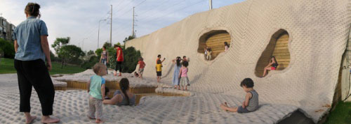Architect Avi Laiser and his wife, performance artist Dana Hirsch Laiser, investigate the concept of “temporary private space” by transforming a forgotten piece of land adjacent to a major highway into a vibrant and innovative playground for the surrounding community.