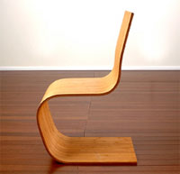 "The Spring Chair's single part form minimizes weight and material waste. Its ergonomic design is contoured to the body. The strength and flexibility of bamboo create a gentle rocking action in a sled-based chair.