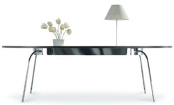 We love the organic shape of this bentwood table. The Moroso website simply says "Plywood curved lacquered or stained".