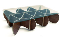 Costructed with birch plywood, walnut face veneer, and toughened glass."