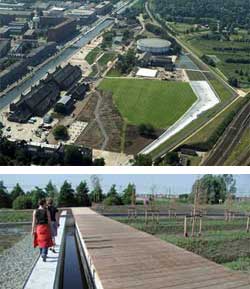 Unlike most brownfield reclamation projects, Westergasfabriek incorporated the existing buildings and structures into the project retaining the history of the site. The project is also ecologically sensitive; all soil was retained and reused on site, and solar panels now grace the frame of the former gas plant.