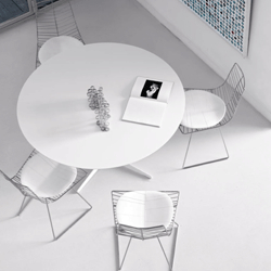 The Leaf collection from Arper exhibits simple lines and is right at home indoors or out. Leaf is available in a painted (white, mocha, green) or chrome finish. Full-grain leather or polyurethane cushions are also available.