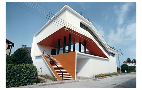 Architect Pouya Khazaeli Parsa drew upon inspiration from Le Corbusier’s “Poem of the right angle” when designing this home which features an aerial ramp that takes you from a first-floor terrace to a roof garden with views of the beaches along the Caspian Sea.