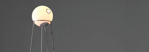 The Spotnik XL is the second incarnation of the Spotnik lamp but in a larger scale. Inside the sphere is a dual-light source offering both spot and ambient lighting. Originally designed as a table lamp, this newer version of the Spotnik now towers above your space at over 6 feet tall.