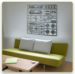 I tried my hand at making more than a few models back in the day and if I remember correctly, most of them were abandoned in various stages of completion. Anyway, Jellio Design has created wall art based on the plastic piece which housed all the parts which will definitely take you back to those glory days of sniffing glue model building. Made of polyurethane resin, the piece is 44" x 44" and weighs approx 20lbs. Follow the link for pricing and availability.