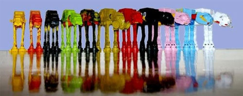 The installation features the original Star Wars AT-AT (Imperial Walker) designs from The Empire Strikes Back in numerous mediums. The main component is a series of twelve customized AT-AT models. Koleric is interested in architecture and industrial design and how both are influenced by popular culture and nostalgia.