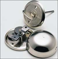 This is really what used to be a corridor bell, as it was originally used for flats in apartment blocks. But the neat bell mechanism, made completely without the use of plastic components, can also be heard in the average-sized family house. The key twist mechanism is designed to fit doors of 6 cm thickness, but can be shortened for thinner doors by cutting the square shaft with a hacksaw. The quality nickel-coated steel plate bell can also be mounted outside.