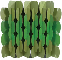 "Tangent tiles allow you to customize the acoustic and aesthetic properties of any environment. Three-dimensional and reconfigurable, they can be assembled in a variety of patterns. These tiles fit almost any wall or ceiling area and are made from 100% post and pre-consumer waste paper. Tangent tiles are easy to recycle when no longer needed. They are durable, can be painted with water-based paints and are easy to install."